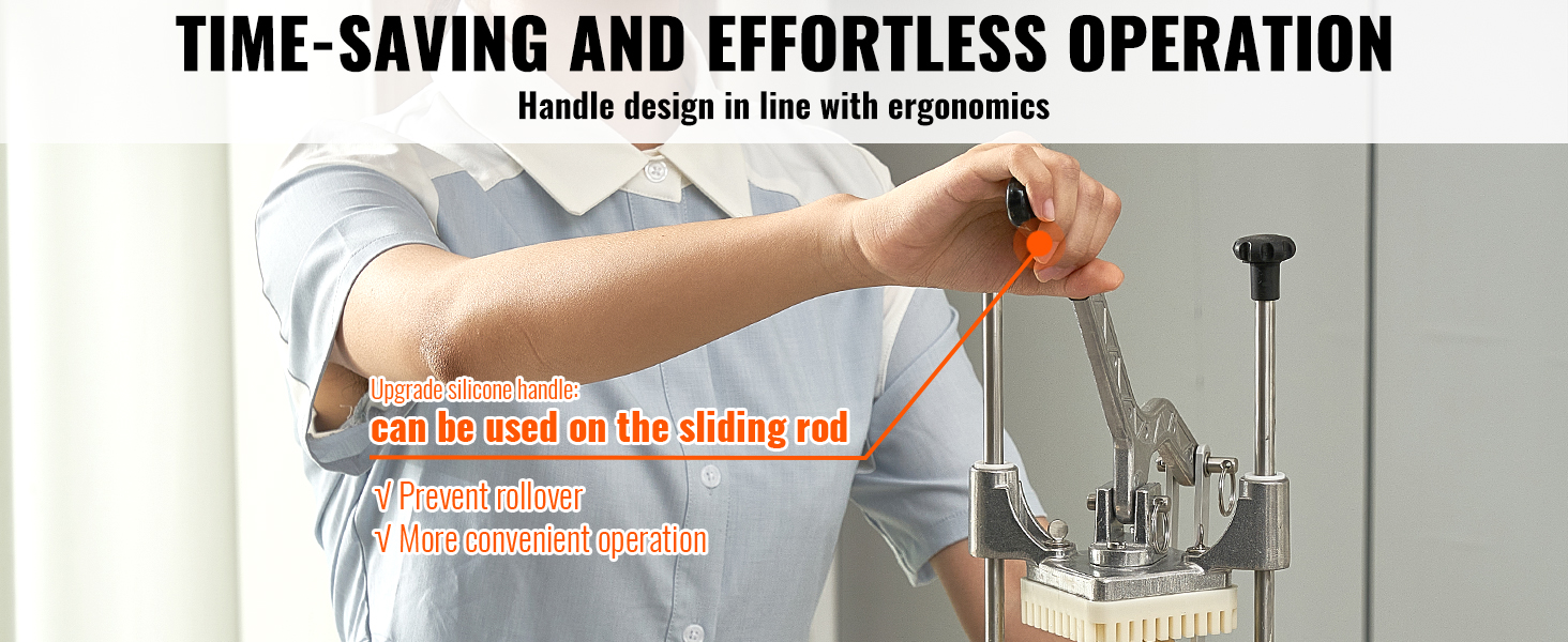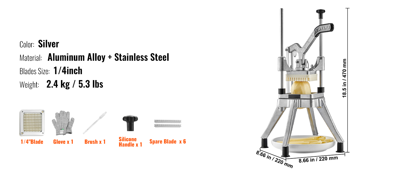 Versatile and Efficient for All Kitchen Needs: Perfect for home kitchens and restaurants, this heavy-duty chopper slices through potatoes, carrots, cucumbers, apples, and more. Ideal for preparing French fries, salads, and desserts quickly and conveniently.
