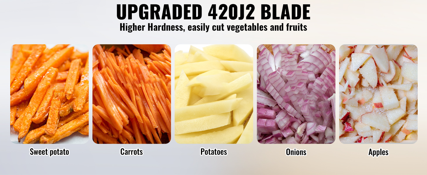 Durable, Corrosion-Resistant Materials: Constructed with strong stainless steel and aluminum alloy, this vegetable chopper offers long-lasting performance and resistance to corrosion. Food-grade 420 stainless steel blades ensure your cuts are both hygienic and precise.