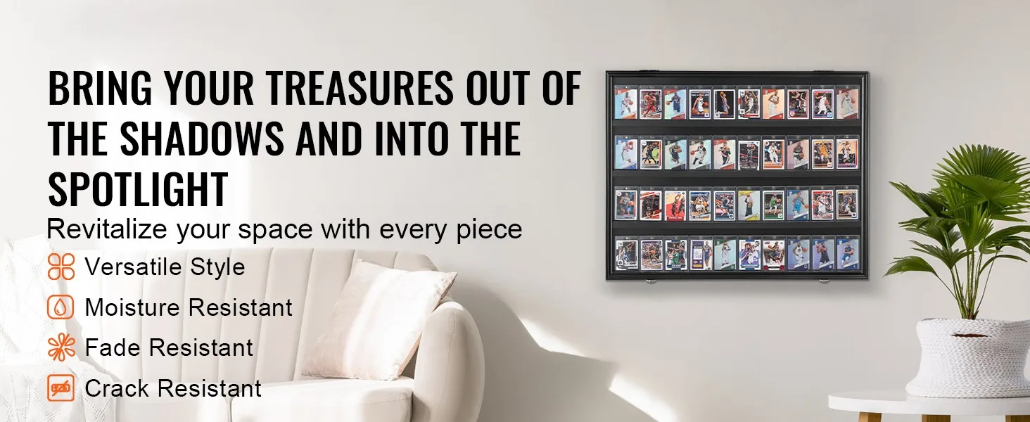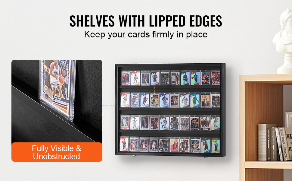 【Ample Storage Space】: Model ZSK-U1 / ZSK-U2——Designed to accommodate cards up to 5.4 inches in height, our sports card display case offers generous storage space for up to 36 cards! With anti-slip edges on each shelf, your cards are securely held in place, allowing for a captivating display angle. Showcase your collection with confidence and style!