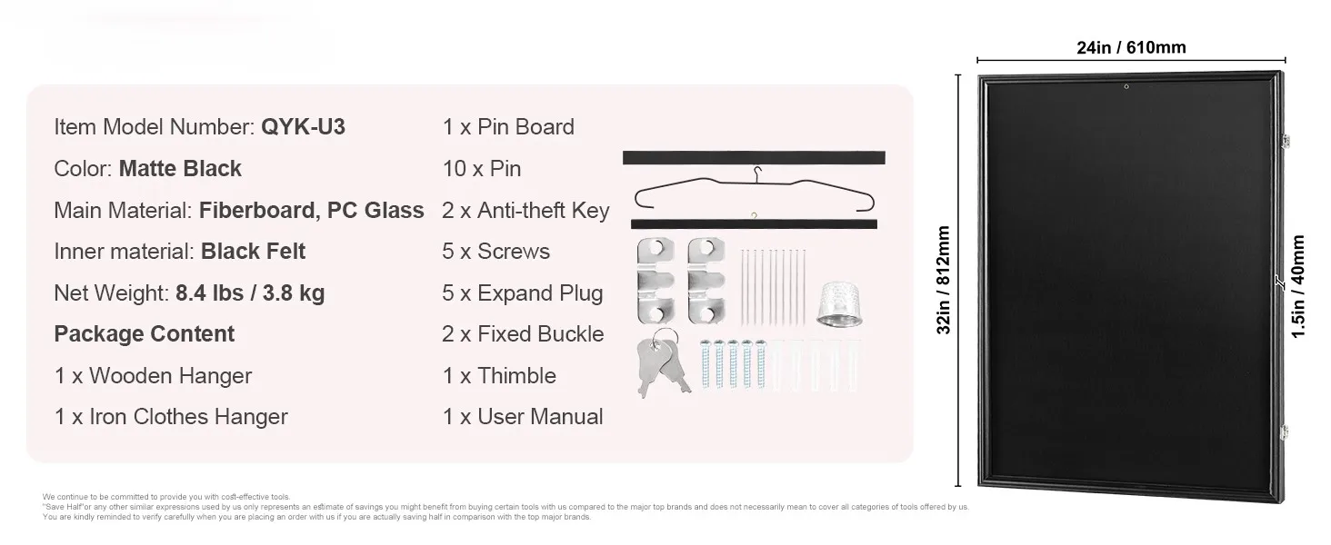 【Versatile Display Options】: Model QYK-U1 / QYK-U2 / QYK-U3——We've got you covered with various accessories to showcase your jerseys! In addition to essential installation parts, we provide a wooden hanger, an iron hanger, and 10 fixed pins. The wooden hanger is perfect for sleeveless jerseys like basketball jerseys, while the iron hanger is ideal for smaller soccer jersey shirts. The fixed pins are best suited for long-sleeved jerseys like soccer and hockey jerseys, ensuring a wrinkle-free display.