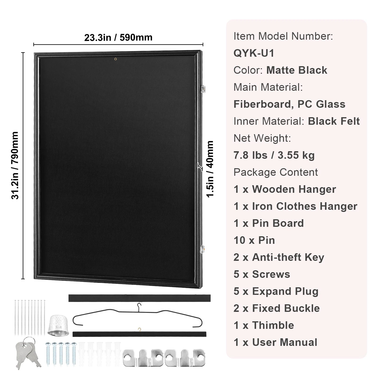 Model QYK-U1 / QYK-U2 / QYK-U3——Perfect for showcasing your sports jerseys! Our jersey frame display case measures 23.3 x 31.2 x 1.5 inches (590 x 790 x 40 mm) / 23.3 x 31.2 x 1.5 inches (590 x 790 x 40 mm) / 24 x 32 x 1.5 inches (610 x 812 x 40 mm) and is tailor-made for displaying a variety of sports jerseys. Crafted from wood, the frame boasts a sleek matte black finish that's fade-resistant, ensuring your prized possessions stand out for years to come. (Jerseys not included).