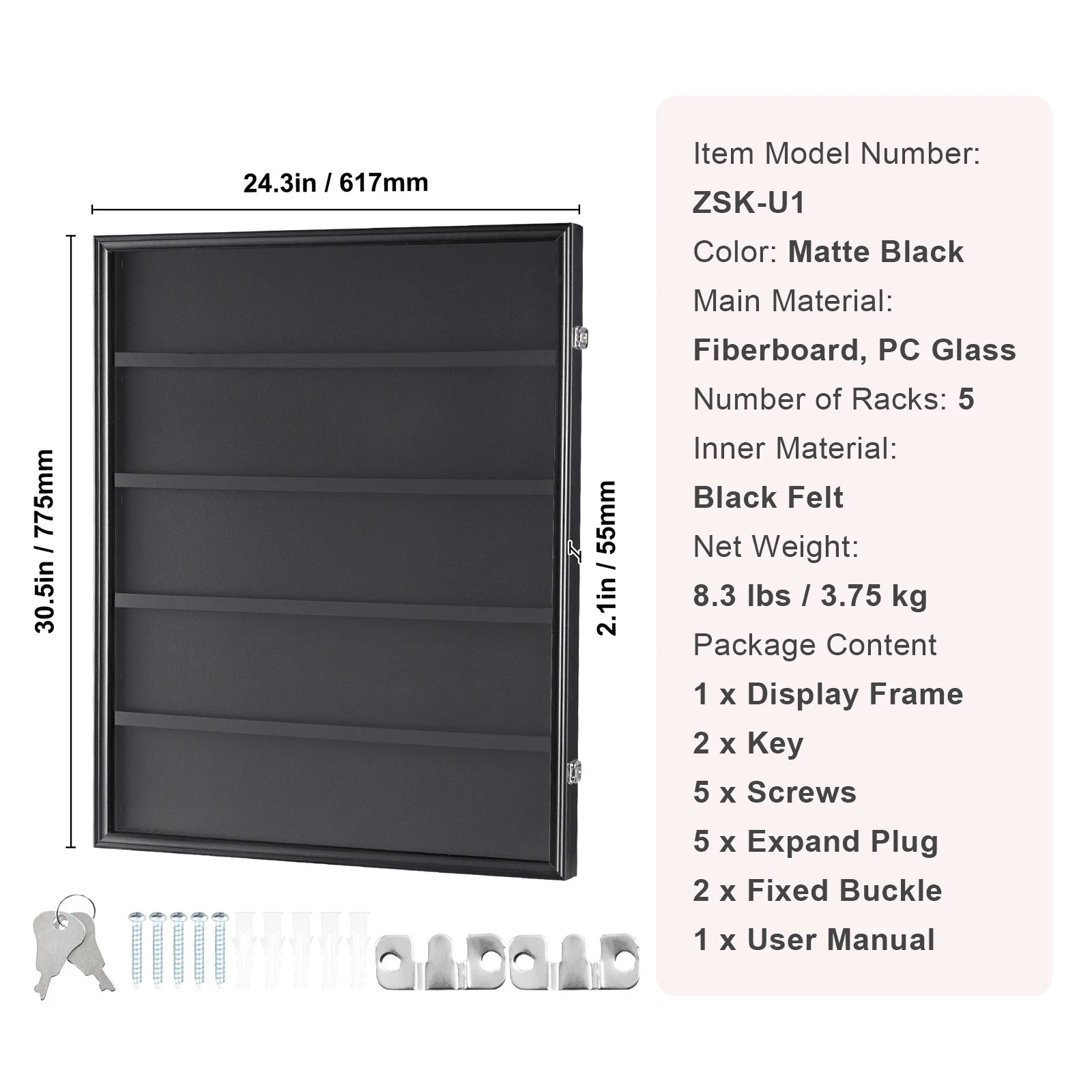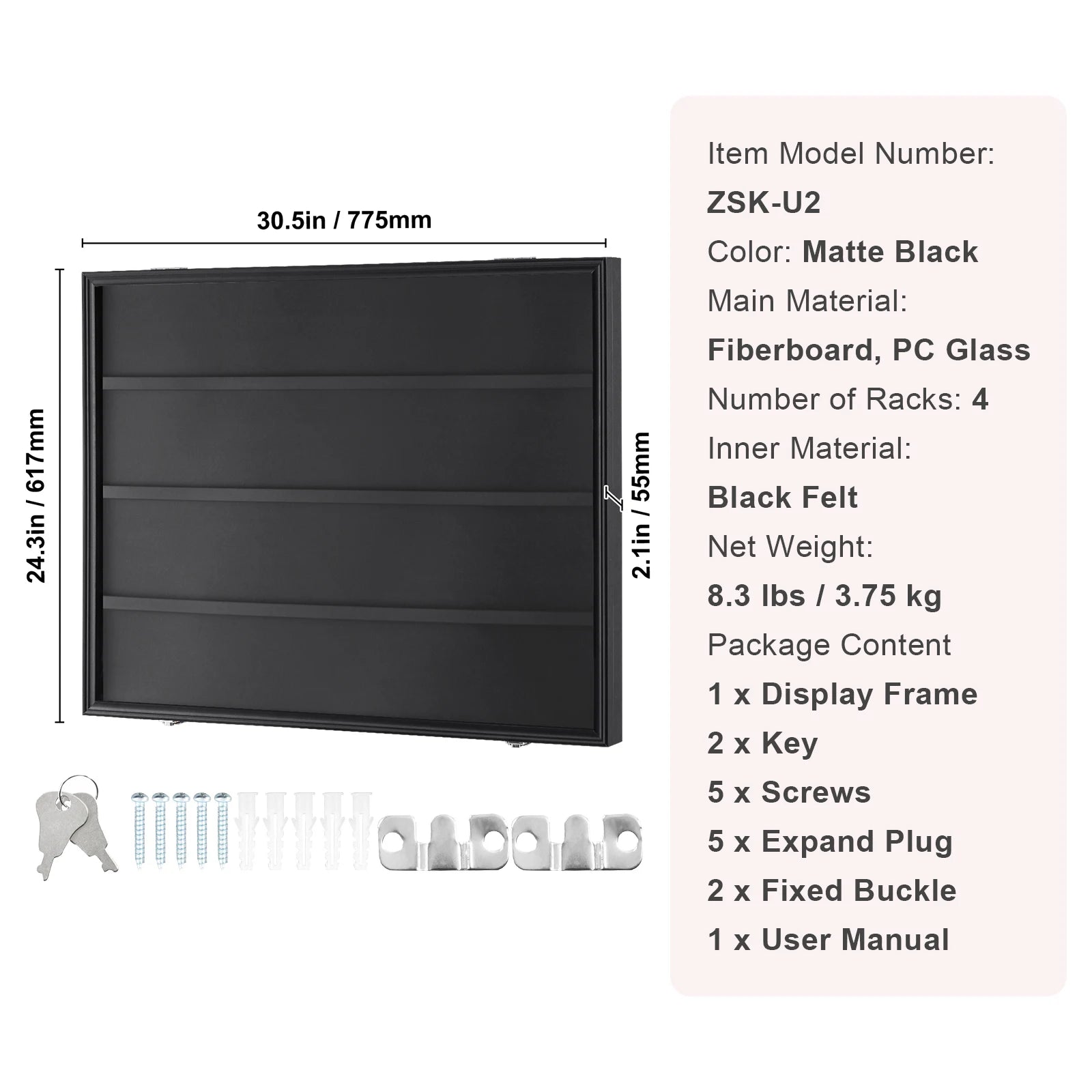 Model ZSK-U1 / ZSK-U2——Measuring 24.3 x 30.5 x 2.1 inches (617 x 775 x 55 mm) / 30.5 x 24.3 x 2.1 inches (775 x 617 x 55 mm), our graded sports card display case is the perfect choice for displaying and preserving your cherished baseball, basketball, hockey, soccer, and other cards. Crafted from quality wood, the frame boasts a sleek matte black finish that's fade-resistant, ensuring your prized possessions stand out for years to come. (Cards and card sleeves not included)