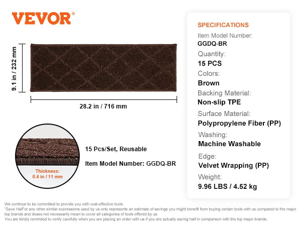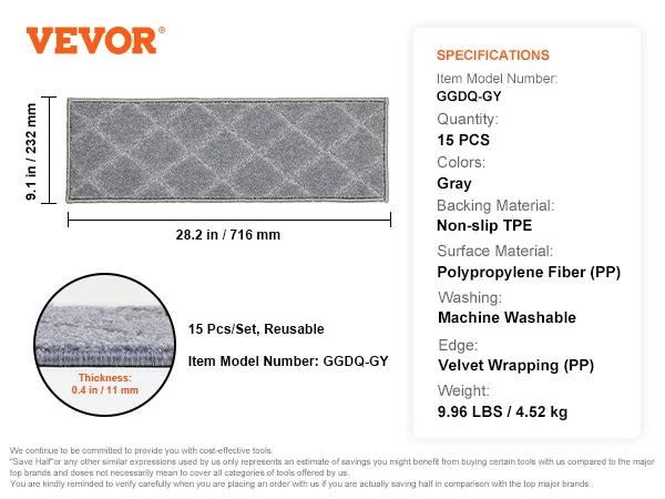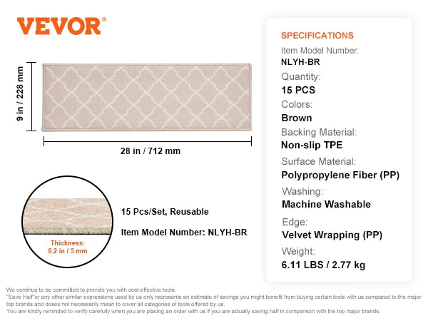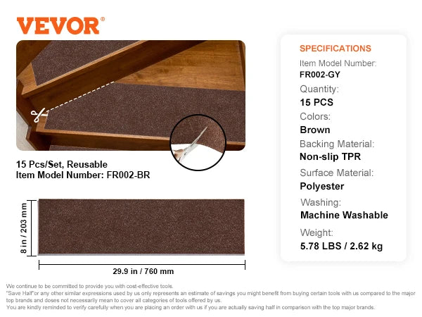 Perfect Size: The 15 pieces of carpet runners for stairs are sized at 28" x 9", making them suitable for most standard stairs. These anti-slip stair treads can be easily adhered to wood, tile, stone, metal, and even glass stairs, providing the necessary foot traction. Enjoy all around protection and ultimate comfort in your home.