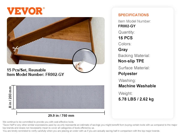 Washable & Reusable: Our non-slip stairs carpets are easy to clean. You can use a vacuum to remove dust, scraps, and pet hair. They can also be tossed into the washing machine, and they will maintain their shape and slip resistance even after repeated washings. Plus, our edge-locking technology prevents any fibers from falling off.