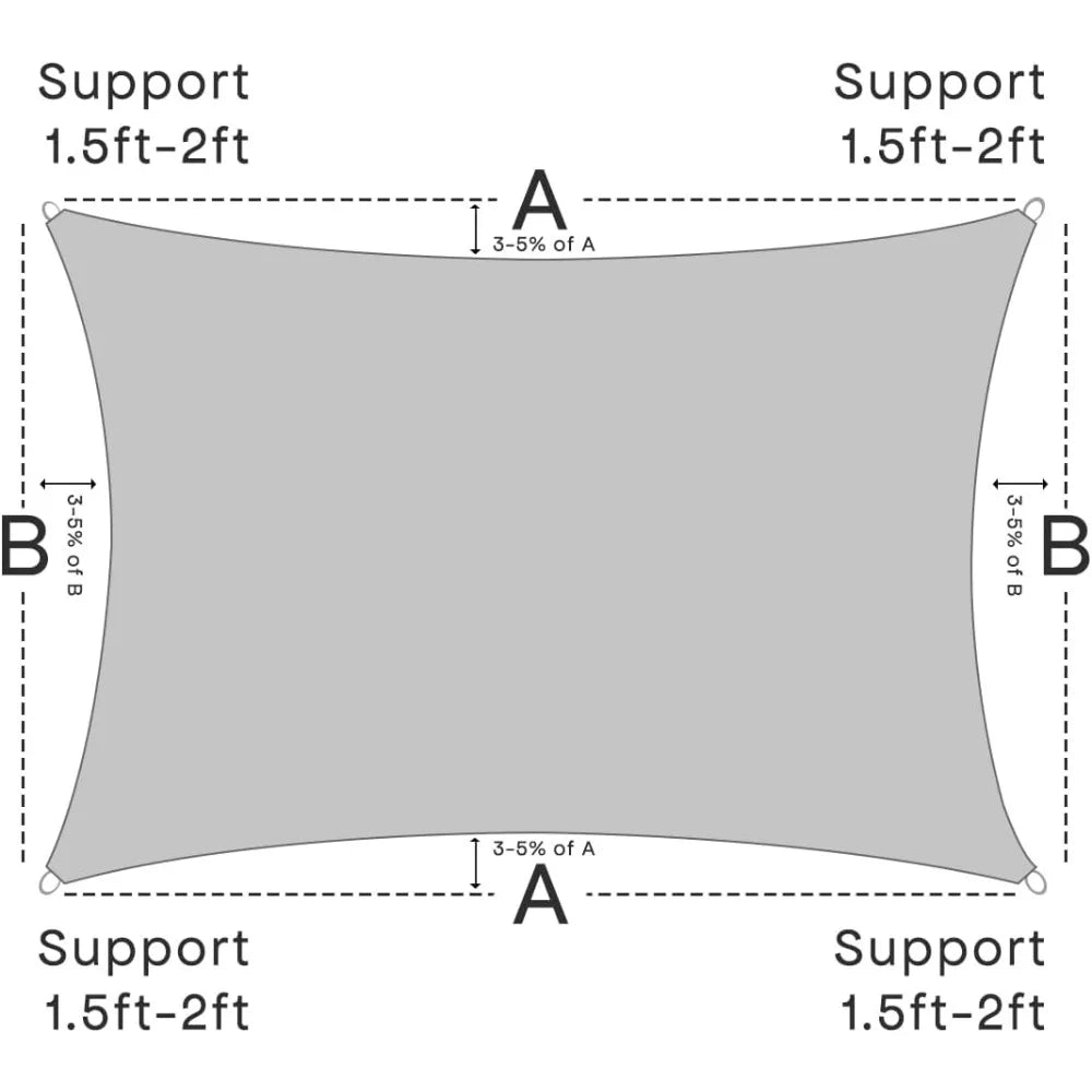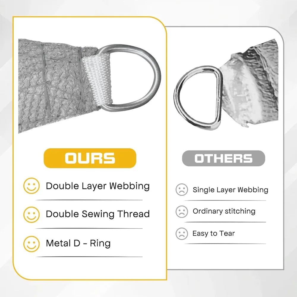- 【Measurement】: Measure from D-ring to D-ring, allowing 1.5 to 2 feet of space between the D-ring and the mounting point for hardware sets. Allow some shade sail around the edges for tension stretching.