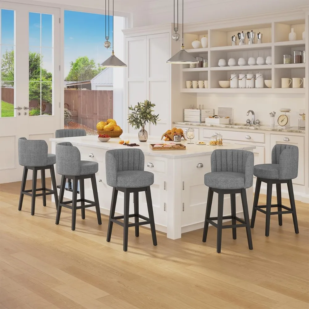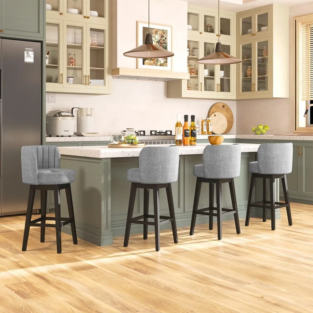 - Sturdy & Stable Solid Wood Construction: The 30-inch 360° swivel bar stool is built with premium solid wood, reinforced legs, and a robust frame, ensuring long-lasting durability and reliable support (holds up to 350 lbs). Its non-slip rubber foot pads effectively prevent sliding and protect floors from scratches.