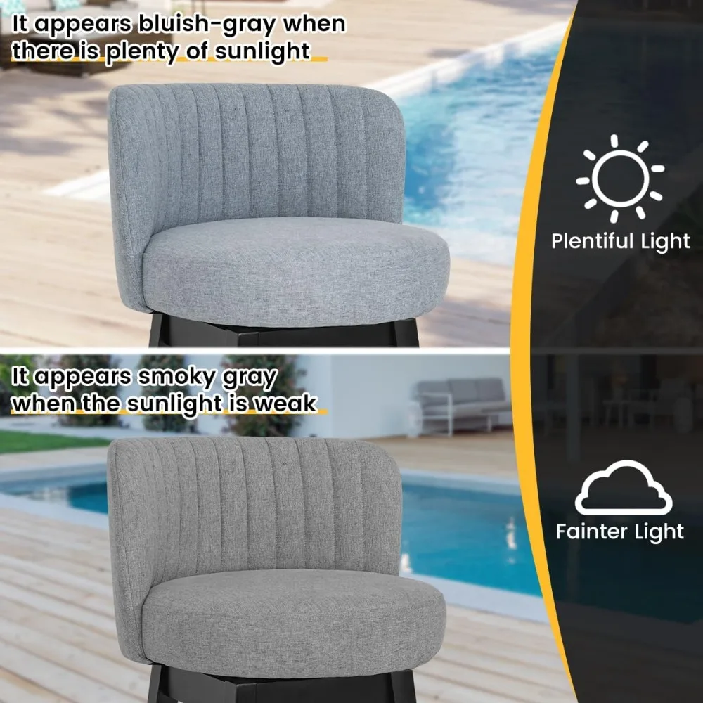 Swivel Bar Stools Set of 2, 30" Seat Height Mid Century Modern Bastools with Back, Bar Height Chairs with Linen Upholstered Sea