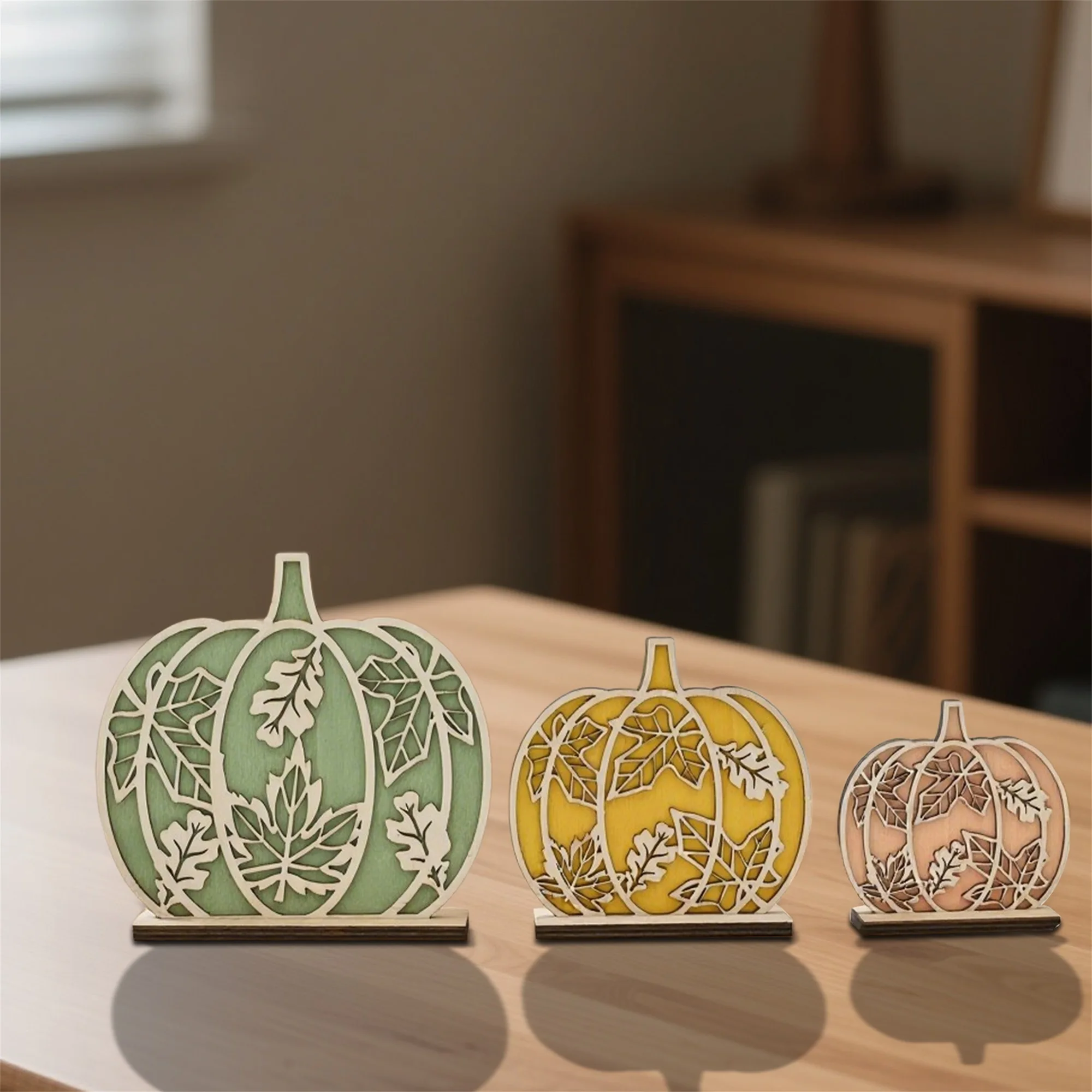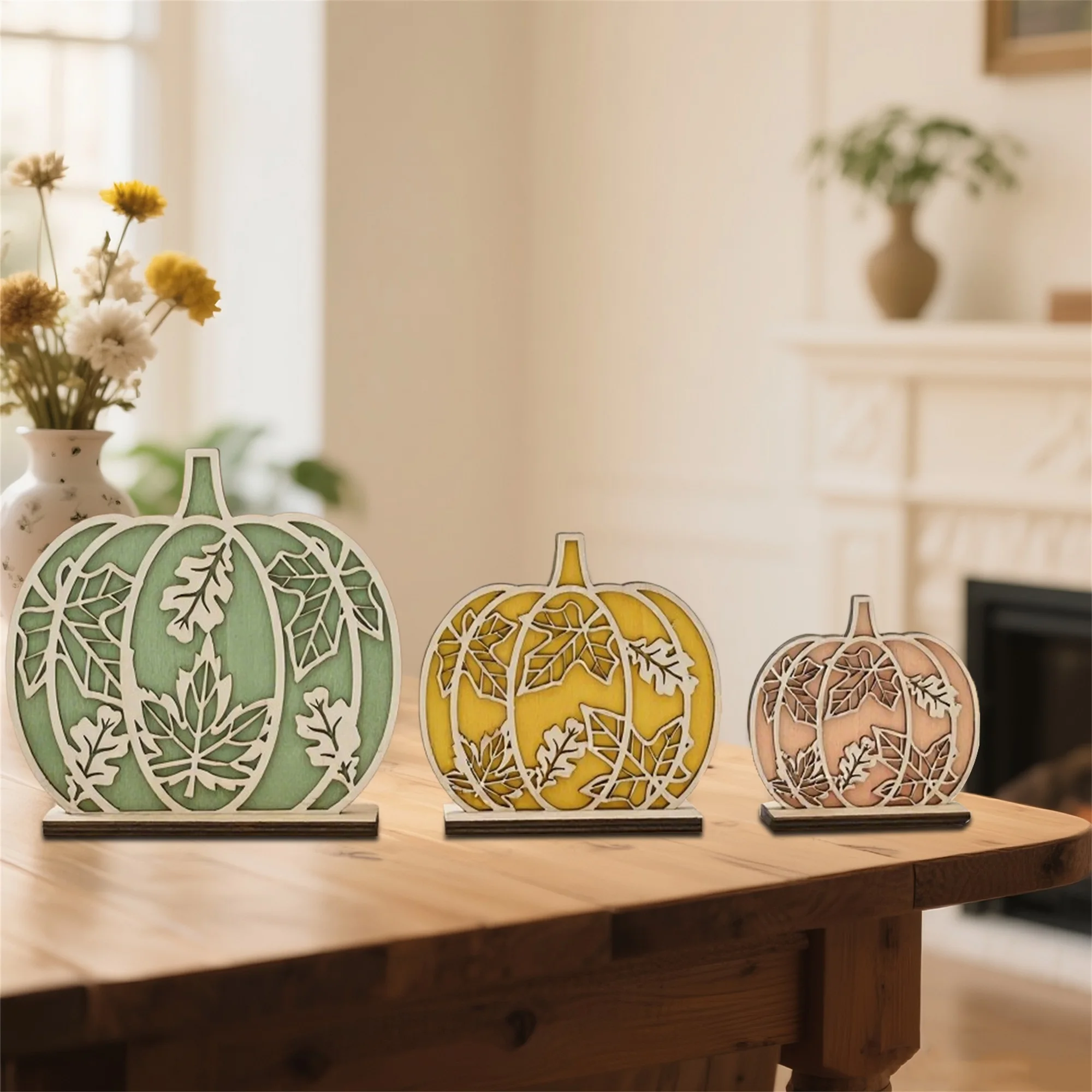 Thanksgiving Pumpkin Decorations 3 Pcs Set Colorful Fall Wooden Decor for Table Home Holiday