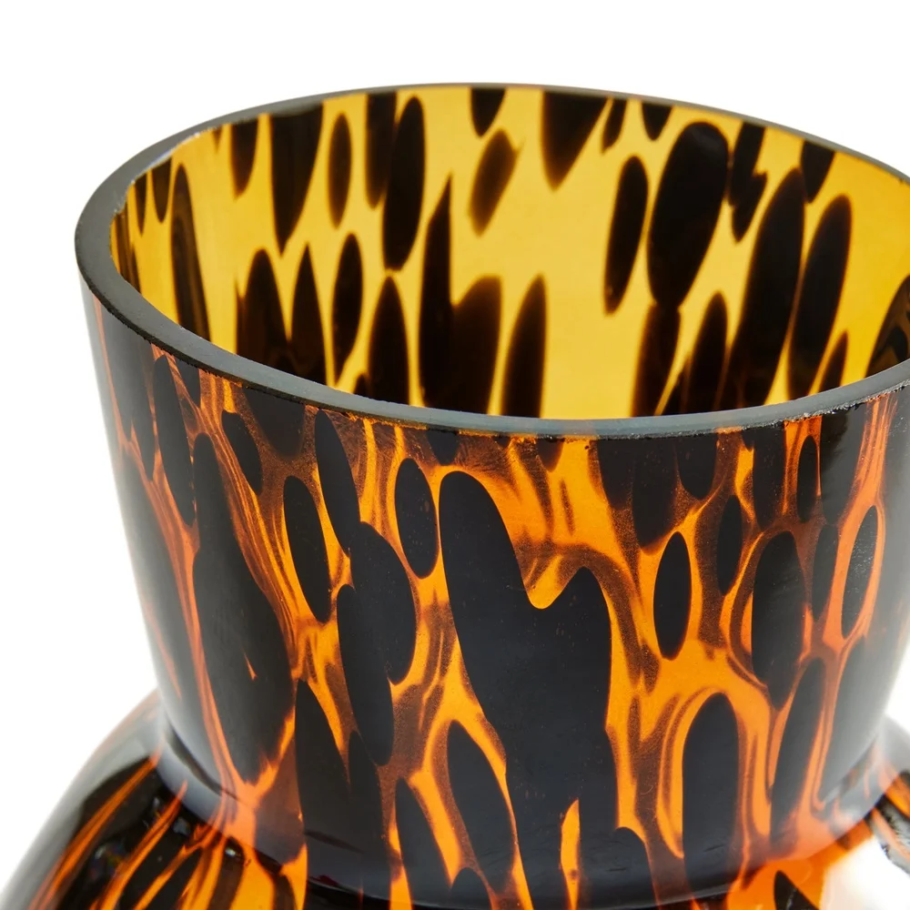 This unique technique creates spotted tortoise patterns that vary from glass to glass, making each one one-of-a-kind. This vase dresses up or down with your table and occasion, perfect for everyday meals to weekend dinner parties. Choose dry flowers or fresh blooms and add a timeless feel to your any corner.