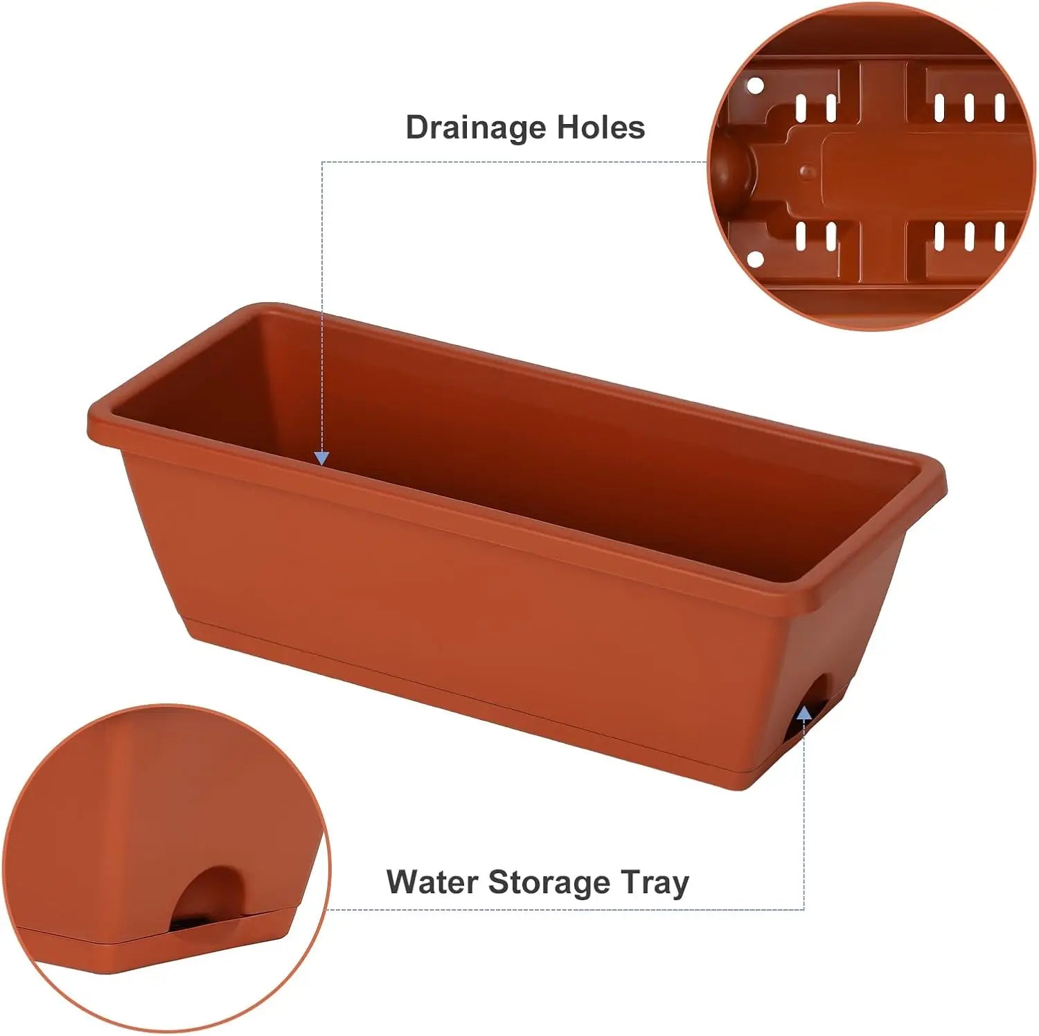 This vertical flowerpot with tray is made of sturdy plastic, and each pot has drainage holes at the bottom to prevent the roots from saturating. In addition, the bottom tray can store water to ensure that plants have the necessary water source for growth