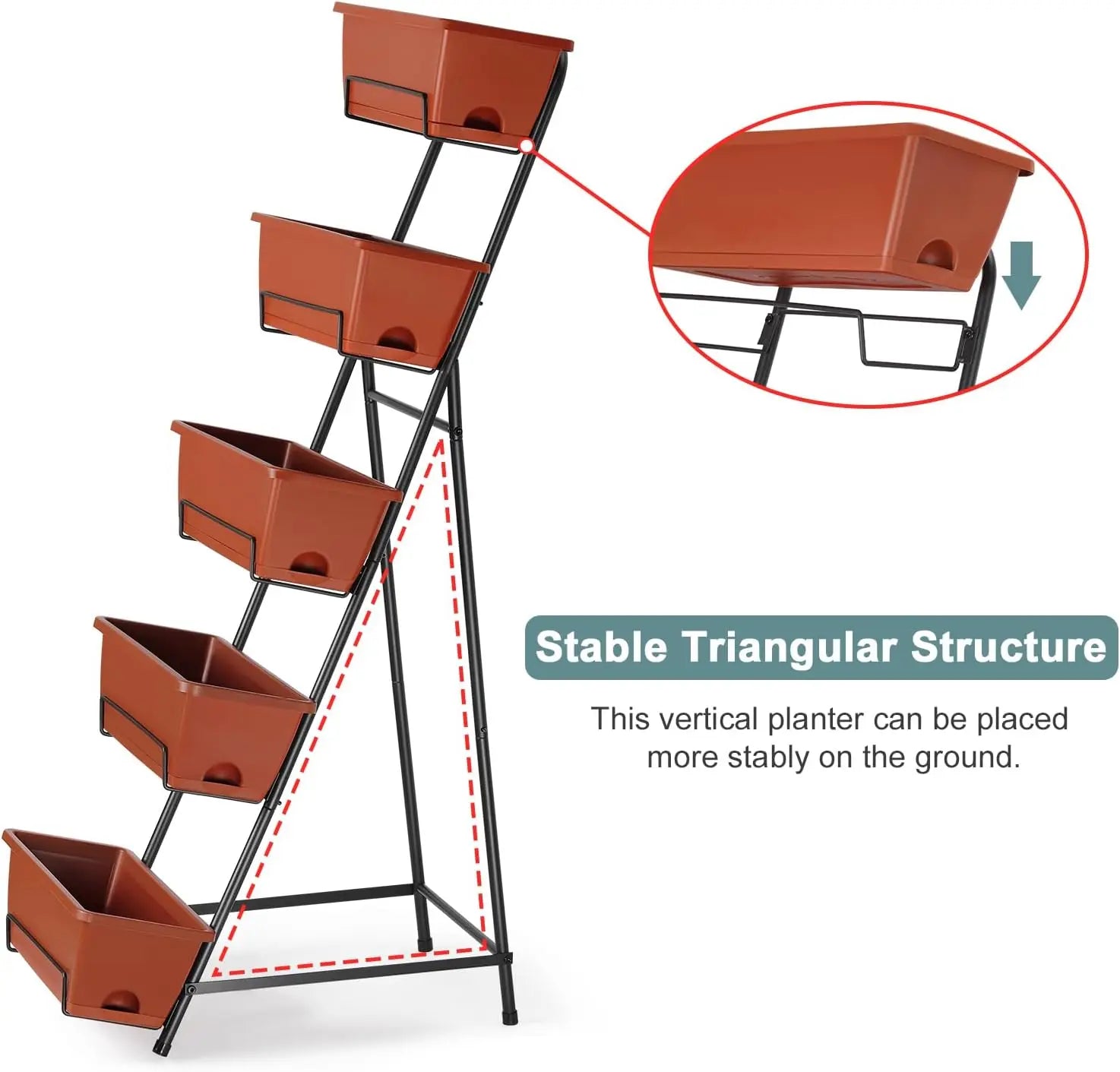 Excellent structural stability: The frame of the vertical herbaceous plant flowerpot is made of high-quality iron and features a triangular design to provide stability. The tilted design allows each layer of plants to receive good light and ventilation
