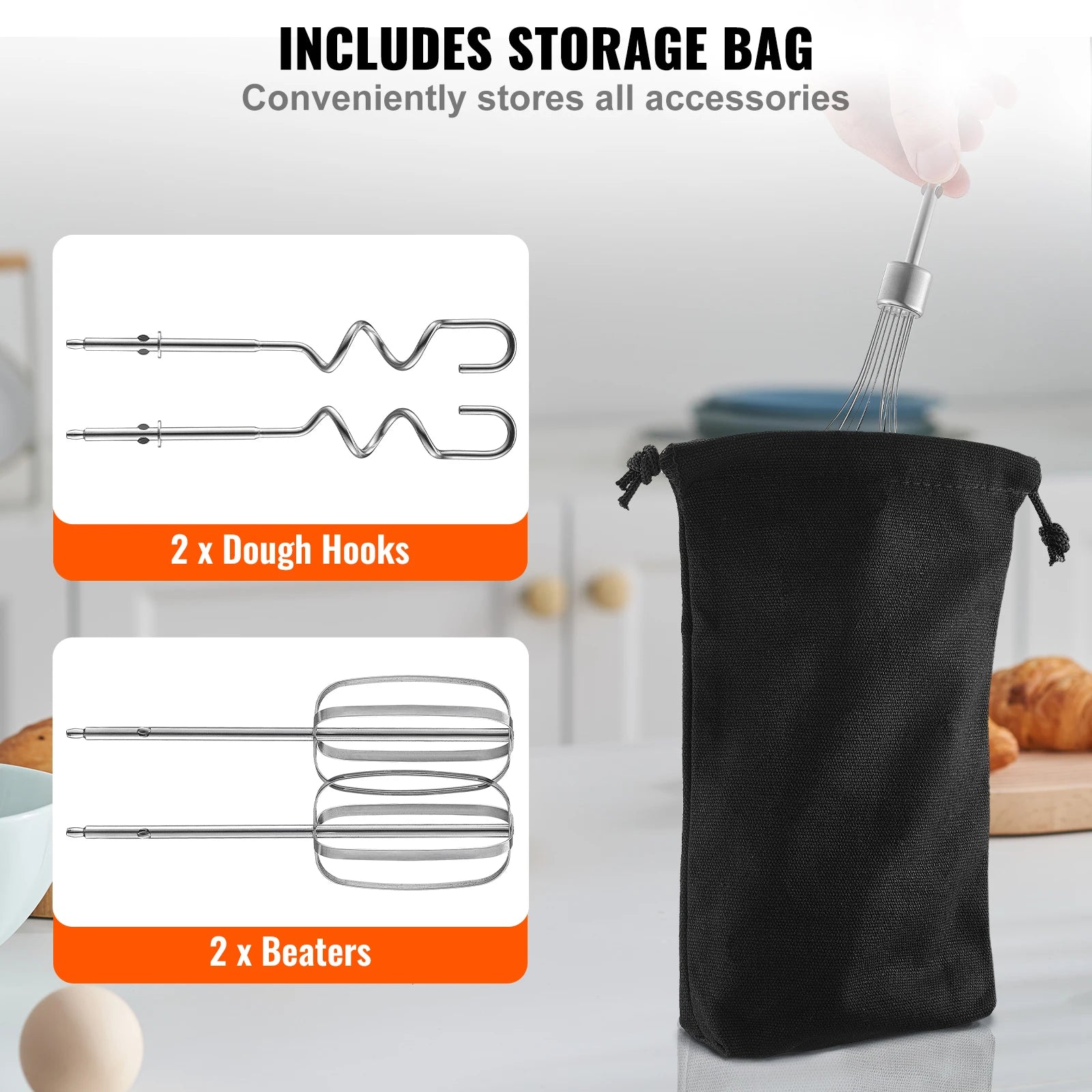 Our hand mixer electric handheld comes with a convenient storage bag, providing a dedicated space to keep all your attachments organized. Say goodbye to the frustration of misplaced accessories.