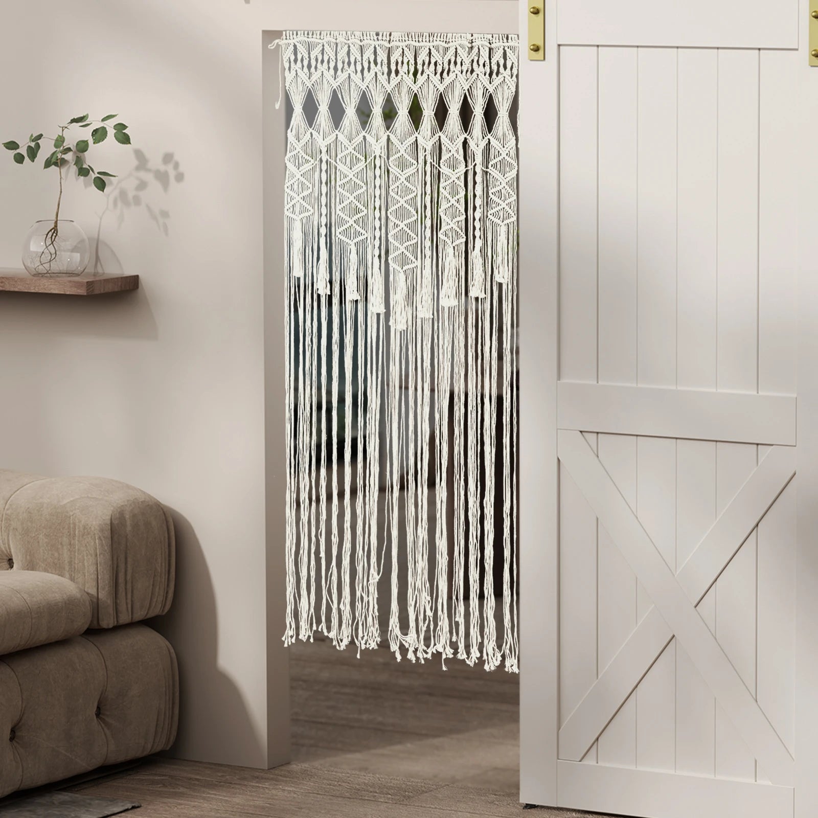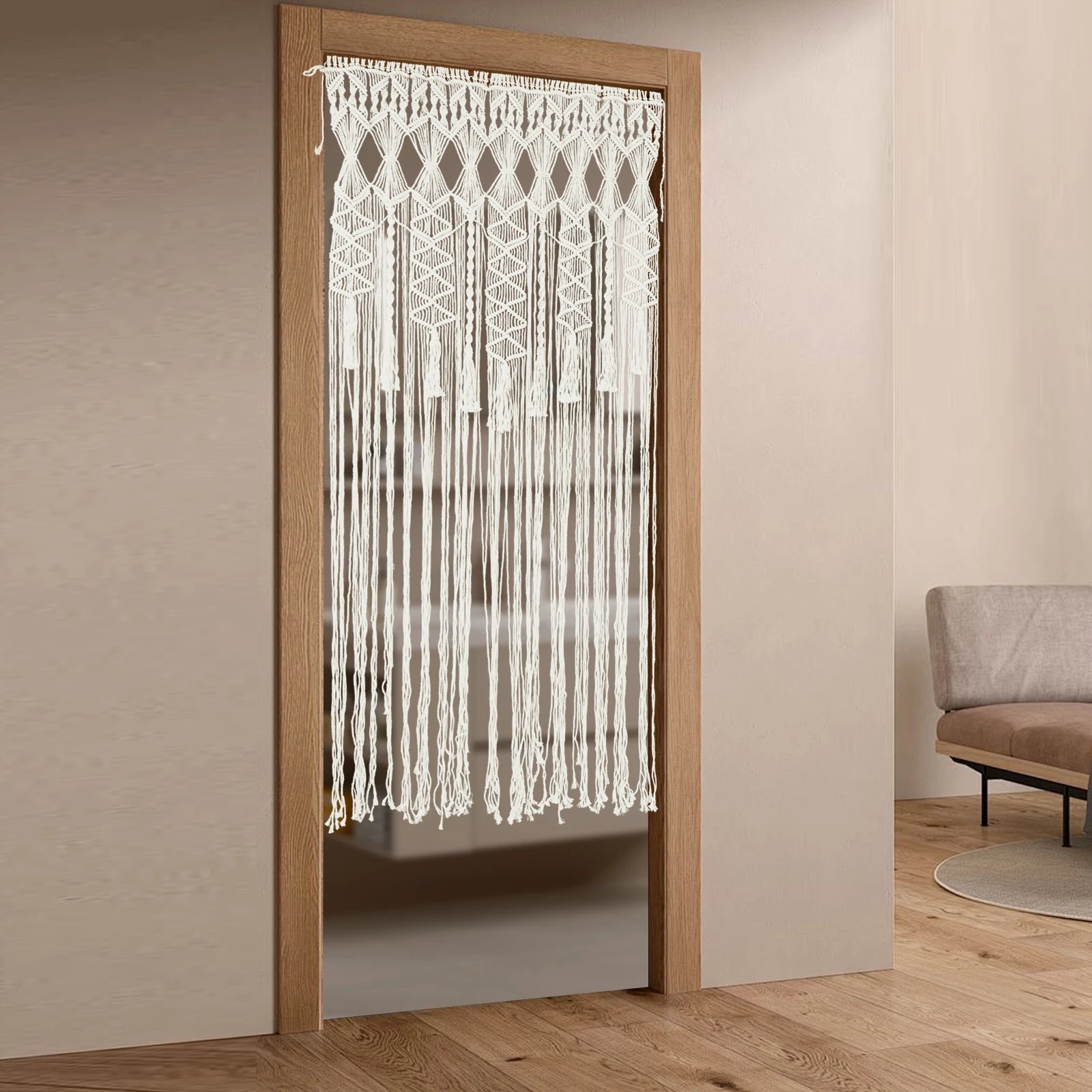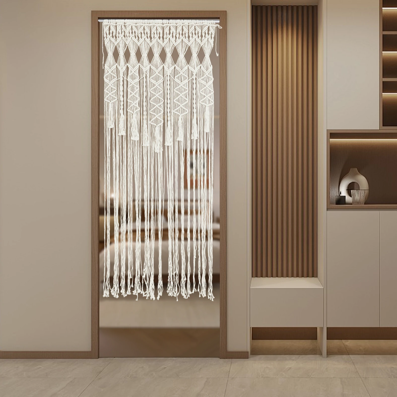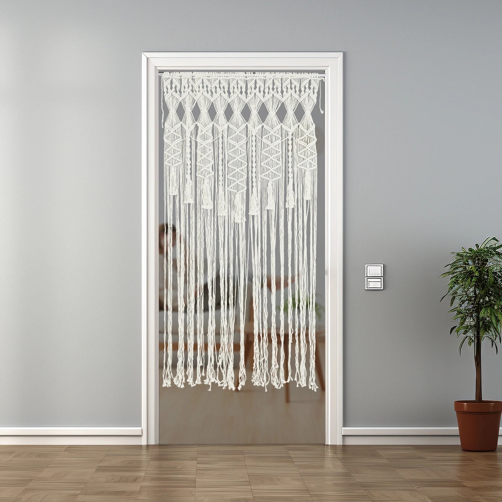 Made of high-quality polyester-cotton thread, this door curtain features smooth lines and fine textures that are both practical and aesthetically pleasing. The skeletonized design protects your privacy without blocking the light and adds a more warm and intimate atmosphere to your home decor. It is fully hand-woven to ensure the quality and feel of the curtain. If you are looking for a beautiful, healthy, and eco-friendly door curtain, our product is definitely the ideal choice for you!