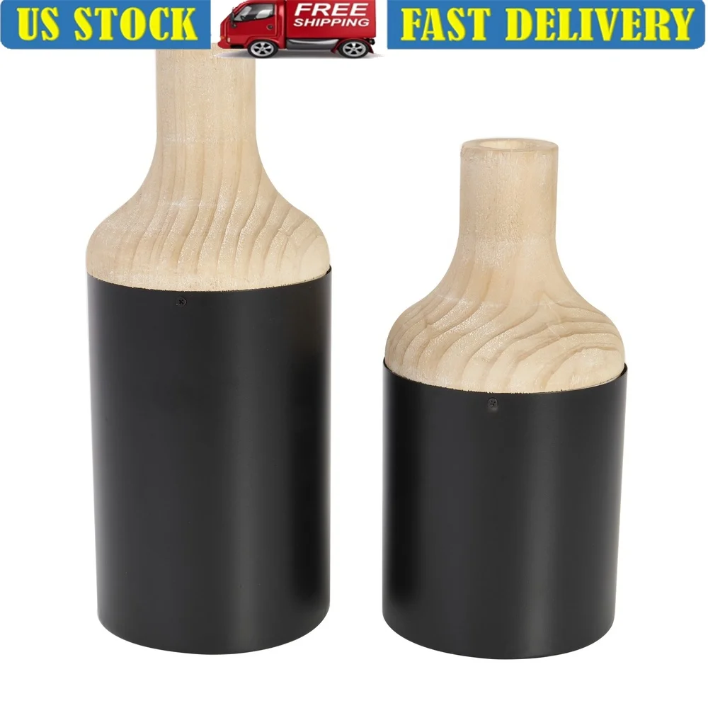 Wooden Vase Set 2 Modern Farmhouse Decorative Cylinder Vases Home Decor Indoor Flower Arrangements Rustic Accent Pieces