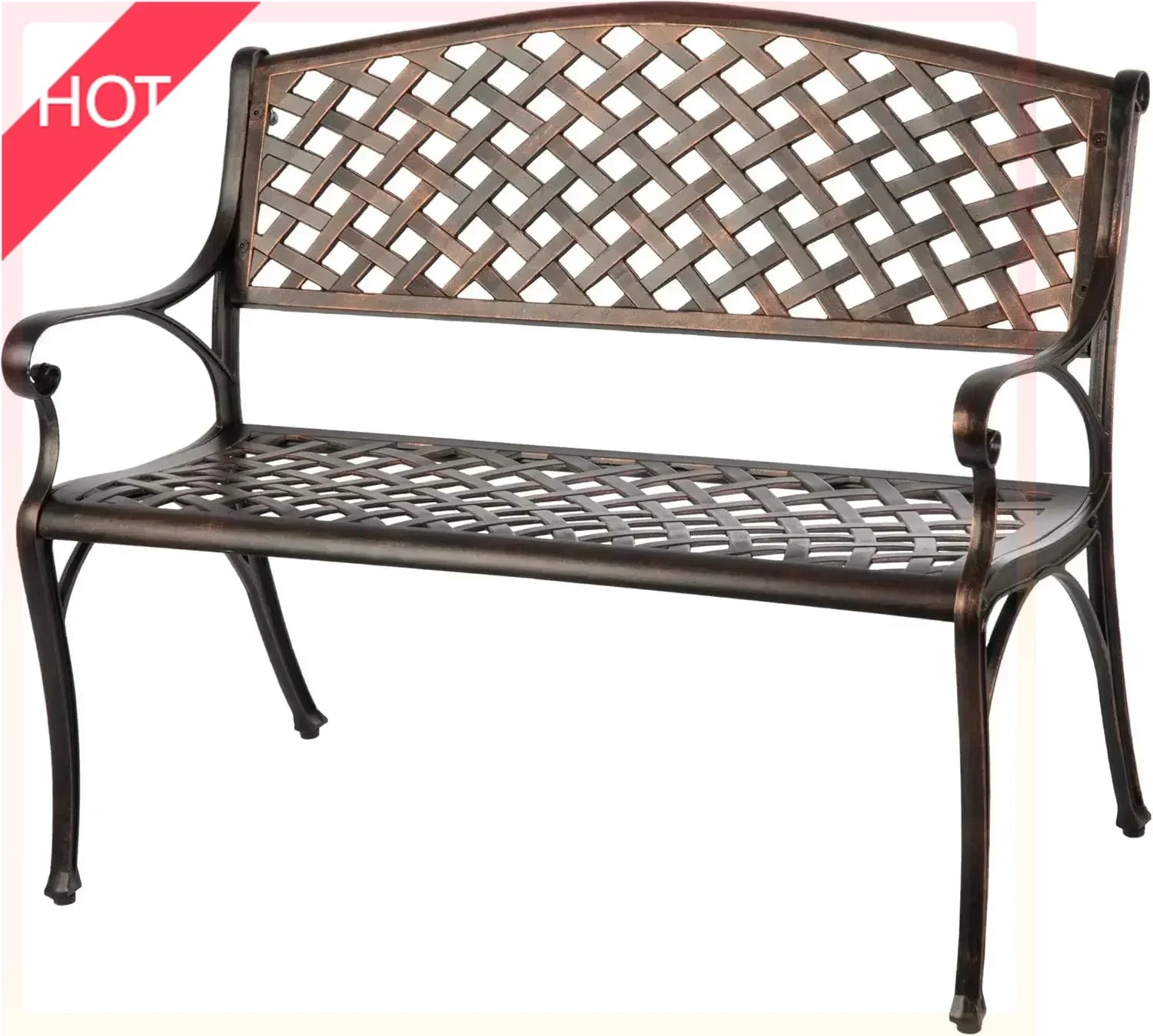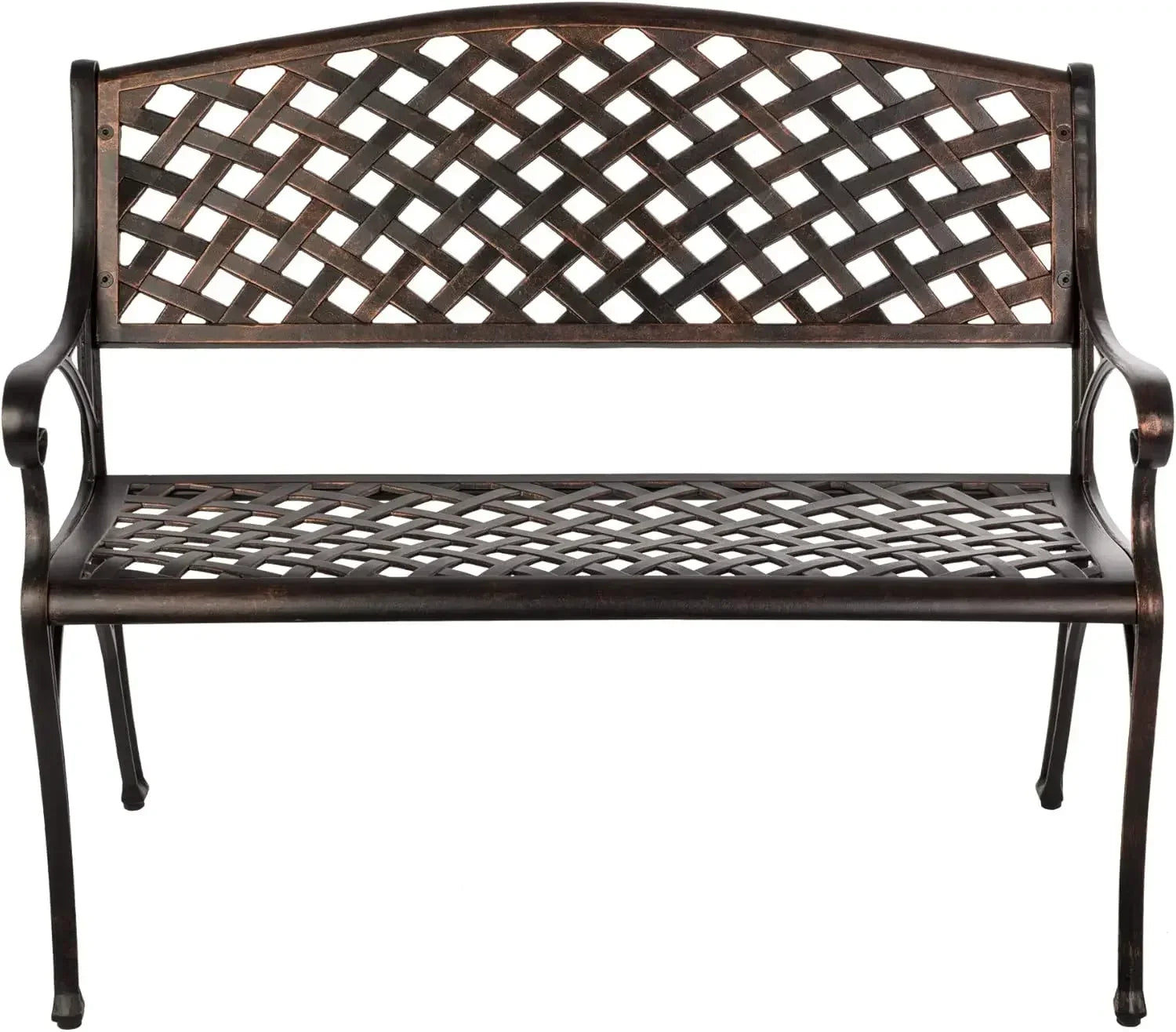 Patio Sense 61491 Patio Bench Cast Aluminum Lightweight Sturdy Bench Perfect for Relaxing Pause in Garden, Backyard Patio Basketweave Design - Antique Bronze Finish