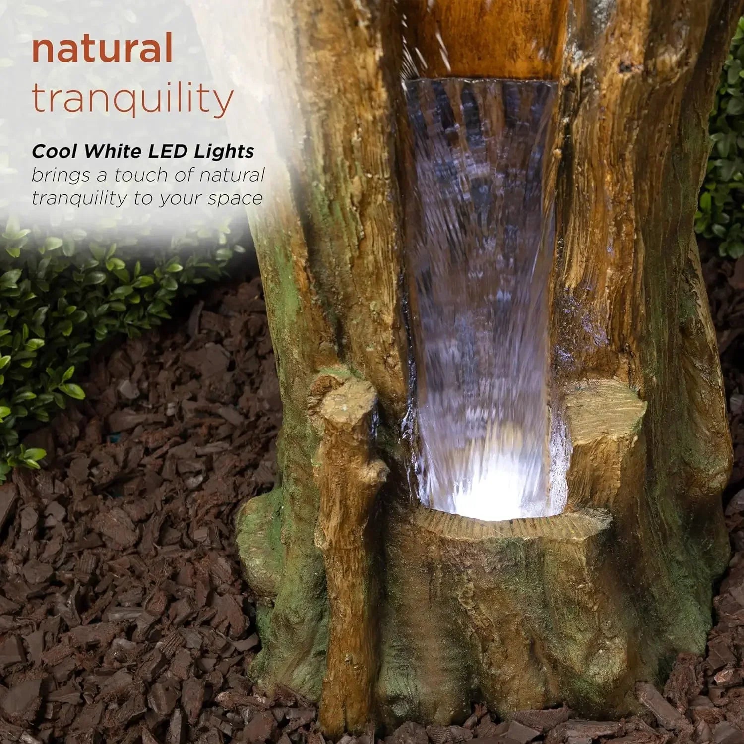TZL294 Tree Trunk Fountain w/Cool White LED Lights, Waterfall for Garden, Patio, & Lawn, 22" H, Brown